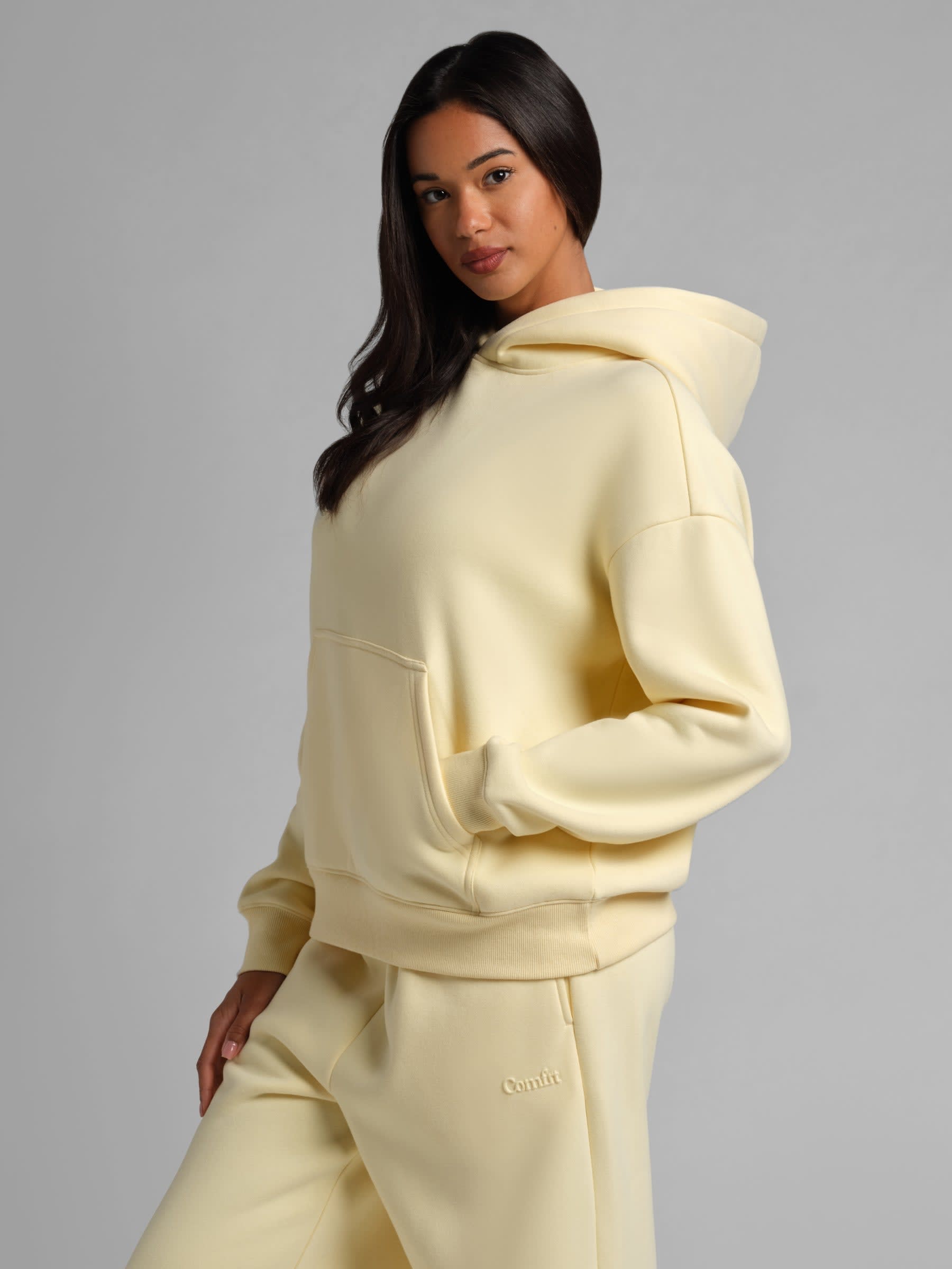The most comfortable hoodie you’ll ever own. Made from our signature Super Soft Combed Cotton Blend, it features our new relaxed easy to wear double-lined hood and kangaroo pocket. Each piece is enzyme washed for next-level softness and premium quality. Finished with an embossed Comfrt logo on the hood for a subtle, elevated touch. Designed to hit at or just below the waist for the perfect everyday crop.