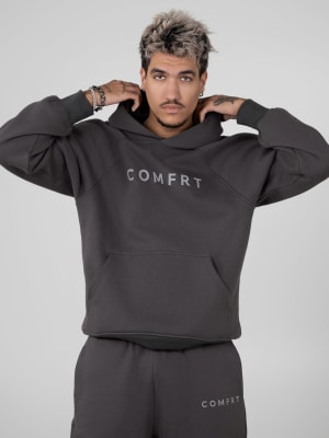 - Our hoodie is designed with extra room around the chest and shoulders with a taper down the body through the waist for a relaxed fit.