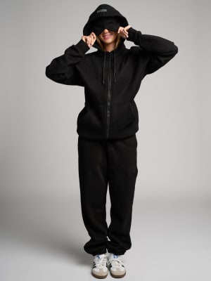 A built-in contoured eyemask lets you rest undisturbed, while zip sleeve pockets keep essentials like your AirPods close. Hidden compartments inside the kangaroo pocket discreetly store your passport and valuables. Finished with an oversized, double-lined hood, this piece redefines travel comfort in motion.