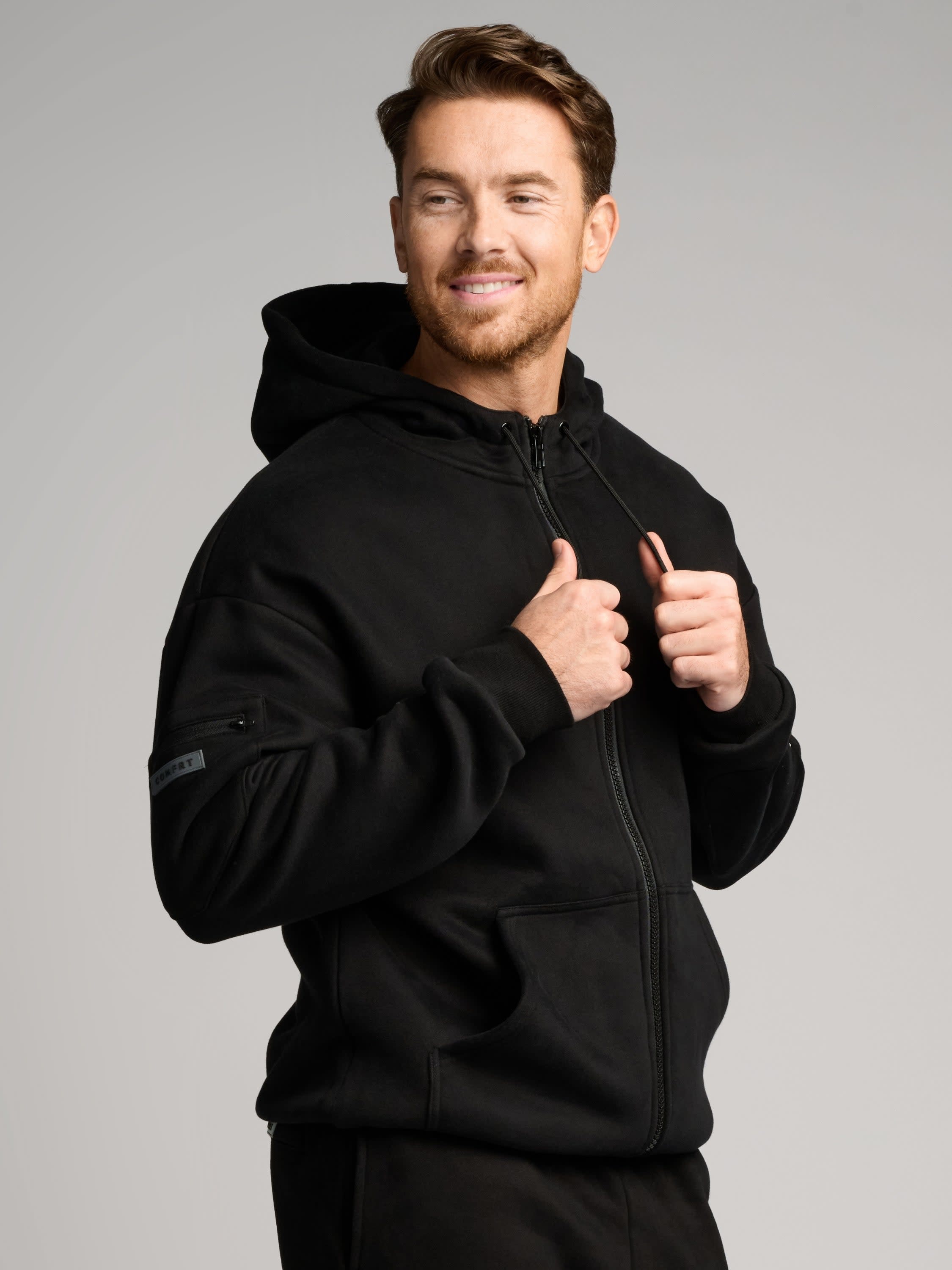 Wrap yourself in Comfrt and unplug with Airplane Mode. Crafted from our signature Super Soft Combed Cotton Blend Heavyweight Fleece, this hoodie delivers effortless comfort from takeoff to landing. The new full-zip construction offers versatility and ease—perfect for layering through every journey.