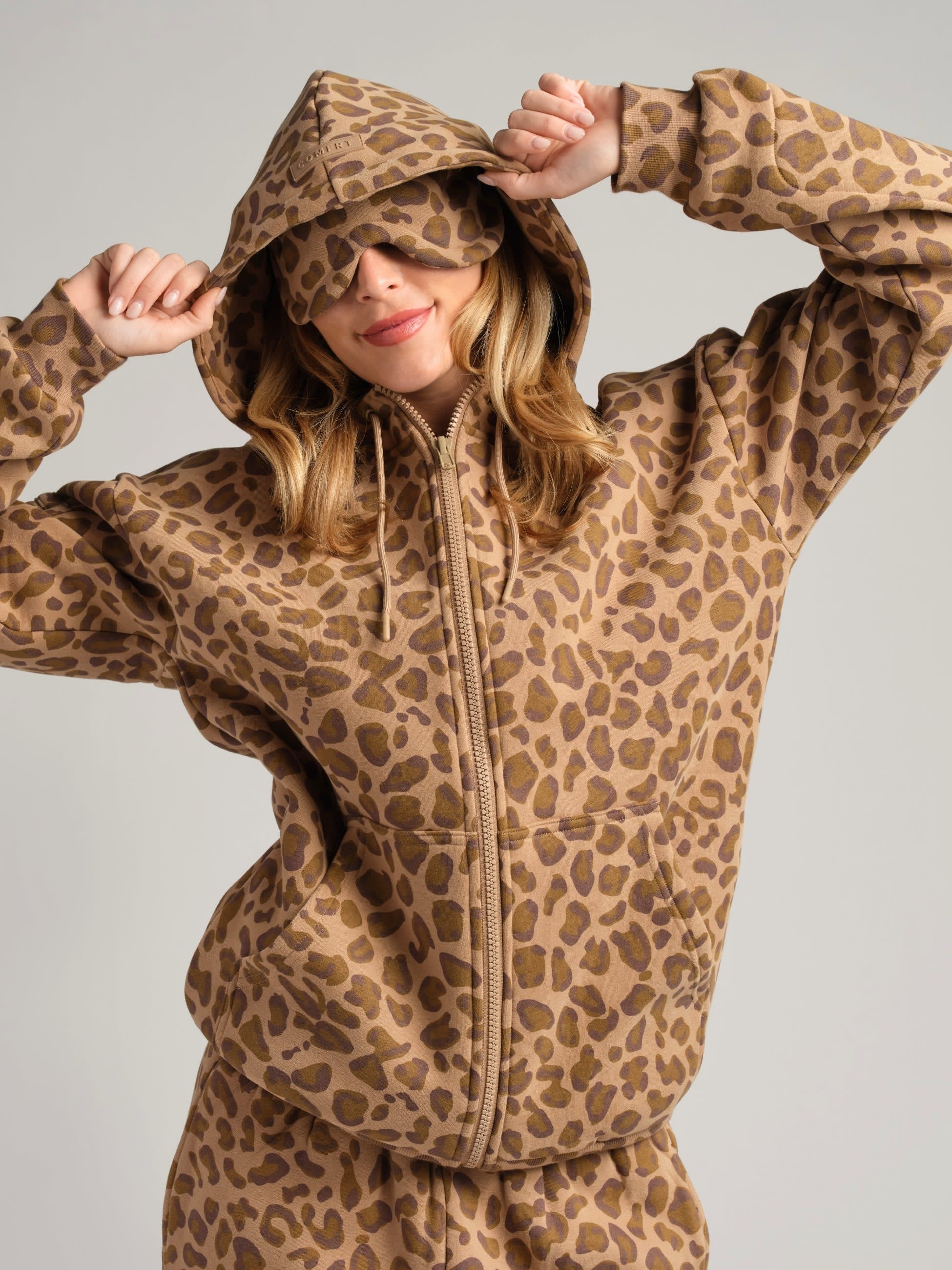 A built-in contoured eyemask lets you rest undisturbed, while zip sleeve pockets keep essentials like your AirPods close. Hidden compartments inside the kangaroo pocket discreetly store your passport and valuables. Finished with an oversized, double-lined hood, this piece redefines travel comfort in motion.