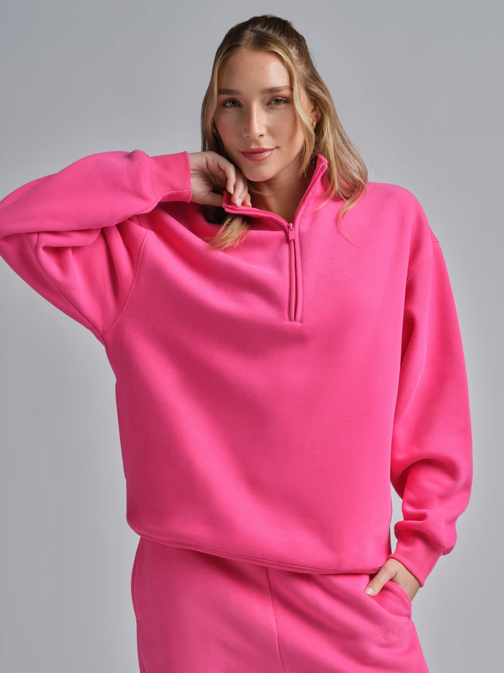 • Mock neck with half zipper front detail