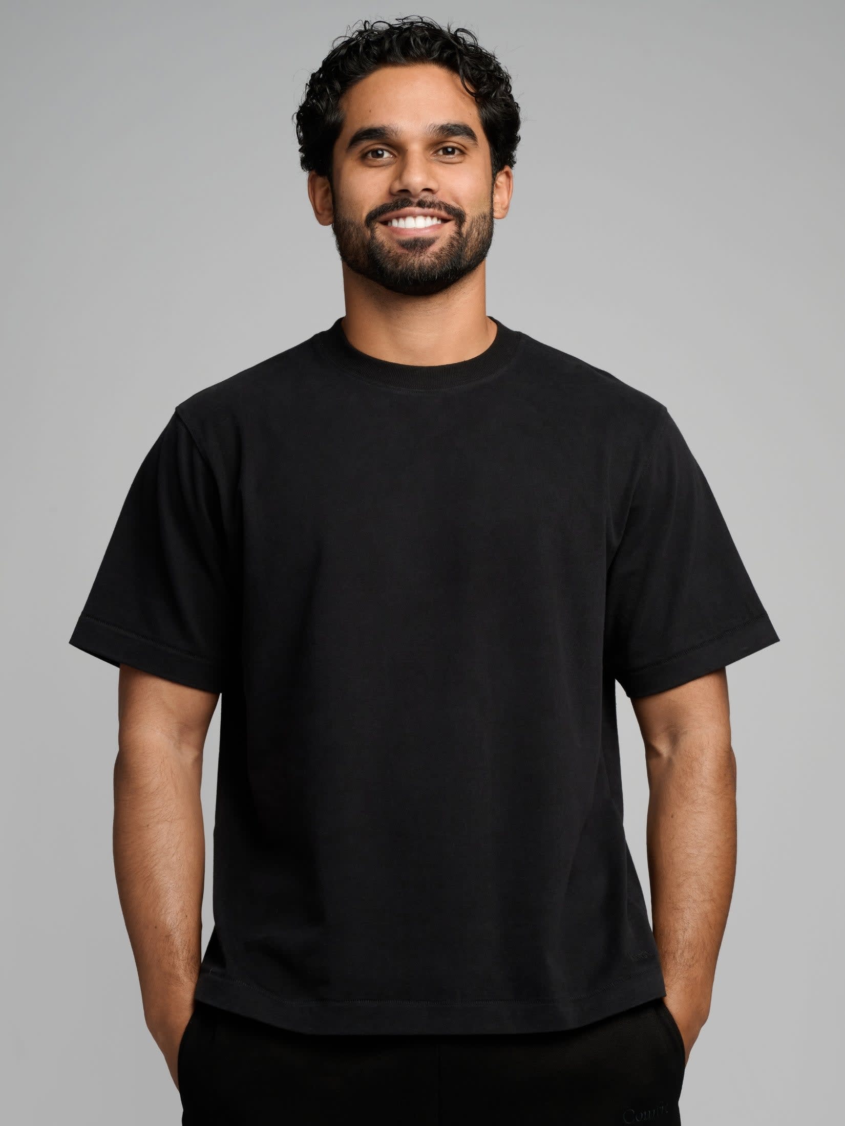 • Embroidered Comfrt logo near the hem for a subtle touch of style