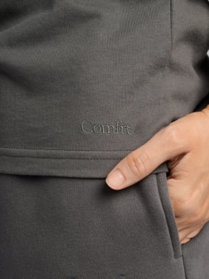 - Embroidered Comfrt logo near the hem for a subtle touch of style