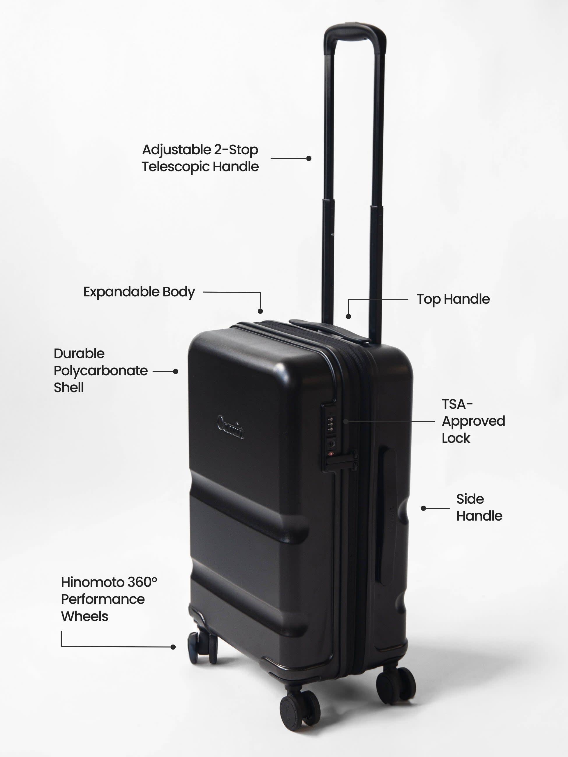 Crafted from a durable, lightweight polycarbonate shell, it keeps your belongings safe without weighing you down. 360° smooth-glide wheels and an ergonomic handle ensure you move effortlessly through airports, city streets, and beyond. With an expandable interior, you’ll always have room for just one more outfit, while a TSA-approved lock offers peace of mind on every flight.