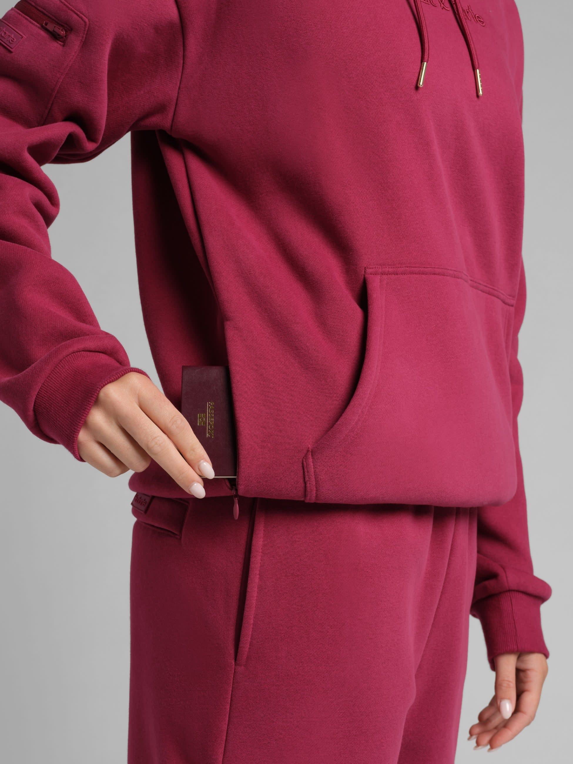 Each hoodie comes with a tarte gift with purchase tucked in the sleeve pocket. The full experience, all in one.