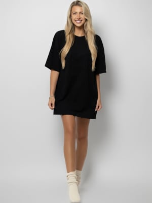 ShanaI will for sure be ordering more of these! The quality of this oversized t-shirt is so good. It’s thick, yet soft, and not hot. It’s become my new sleep shirt! I am 5”11, 160ish pounds and got a medium. It’s not quite as long on me as the model on website, but still fits great!