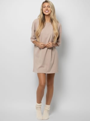 The color and thickness of the fabric are nice. I do wish it was slightly longer. It comes to just below my butt. But it’s a very comfortable sleep shirt.