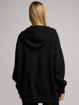 Your new go-to layer. This super-soft, luxe sweater-knit hoodie features a relaxed, straight fit and a comfortable waistband that hits at the lower waist or hip. The textured knit adds dimension and visual interest, complemented by an elevated faux leather label at the kangaroo pocket. Easy to style, incredibly cozy, and perfect for everyday wear.