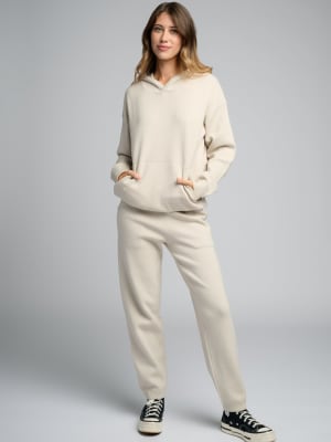 Your new go-to layer. This super-soft, luxe sweater-knit hoodie features a relaxed, straight fit and a comfortable waistband that hits at the lower waist or hip. The textured knit adds dimension and visual interest, complemented by an elevated faux leather label at the kangaroo pocket. Easy to style, incredibly cozy, and perfect for everyday wear.