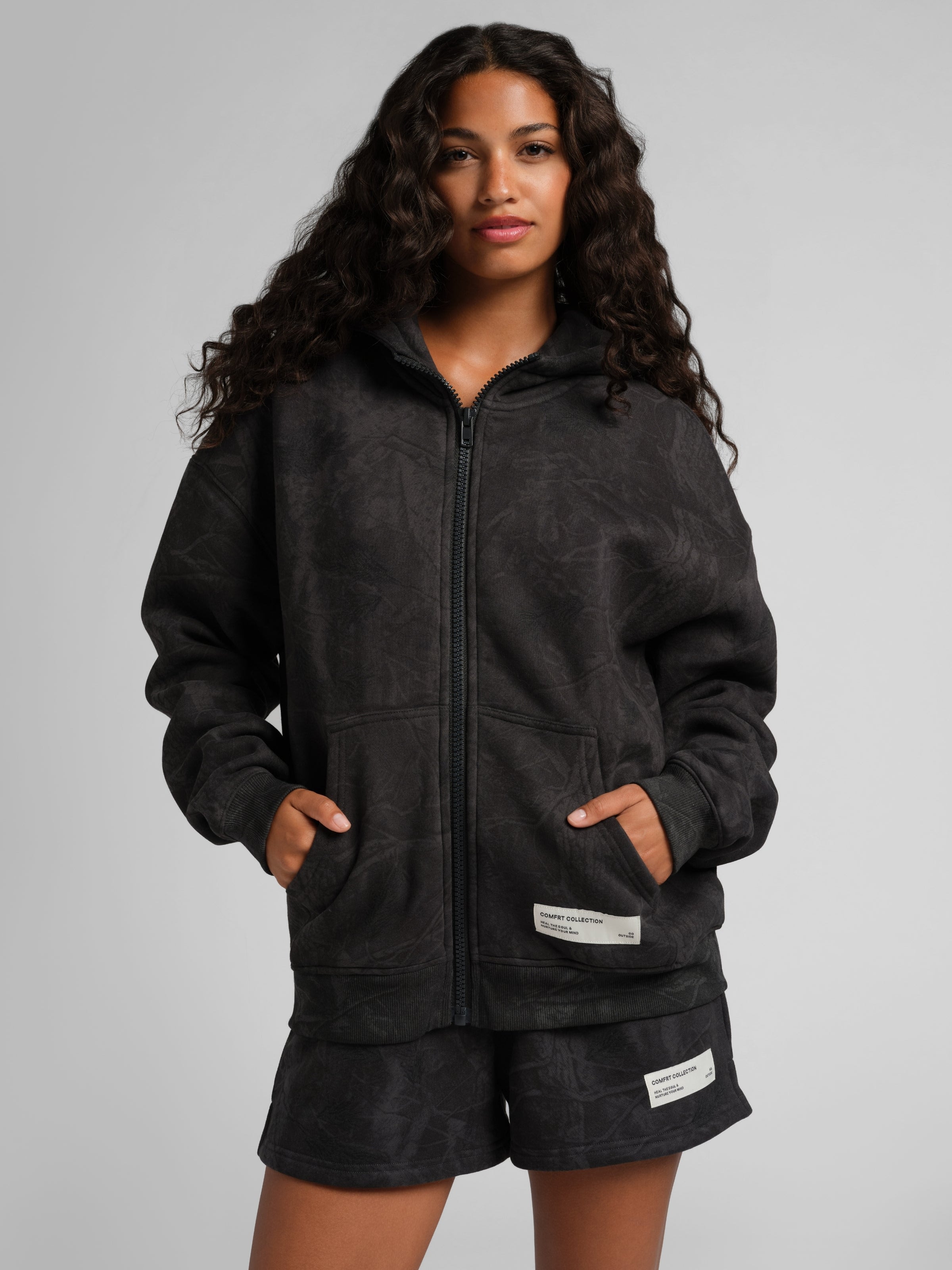 Designed for laid-back comfort with a nod to nature, Our Camo shorts feature an easy, relaxed fit with an elastic drawcord waistband, side pockets and the most comfortable fit. Made from ultra-soft fleece, they’re your go-to for lounging, layering, or getting outside. Pair them with our matching Camo Essential Tee for a full camo moment—Comfrt style.