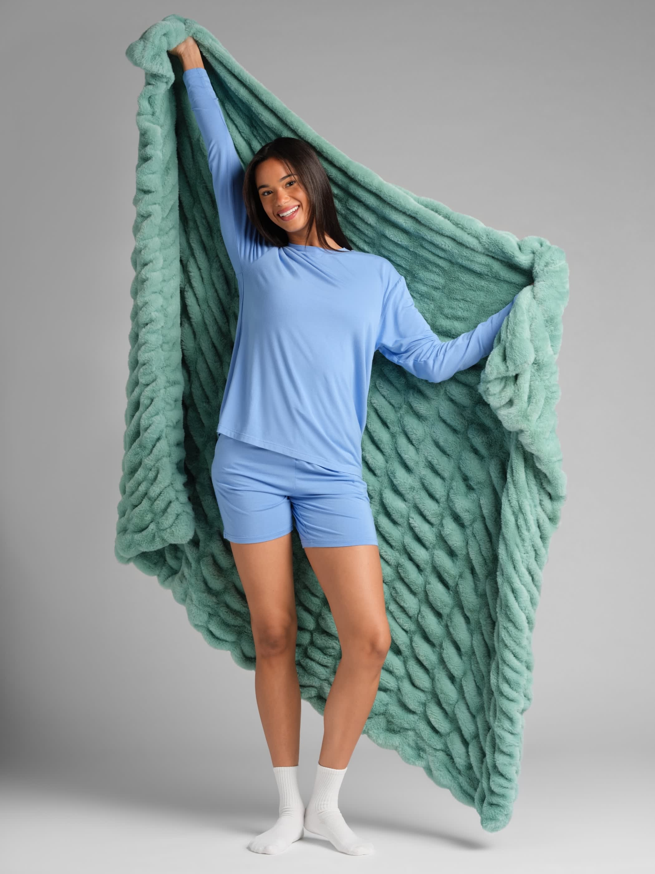 It's like being wrapped in a cloud, but it's better. The Dreamer Blanket's plush, velvety fabric is designed to envelop you in softness, making it your go-to for unwinding and relaxing. Warm and cozy, with just the right amount of stretch, this blanket is the perfect gift for a loved one or yourself. Make every moment a dreamy one.