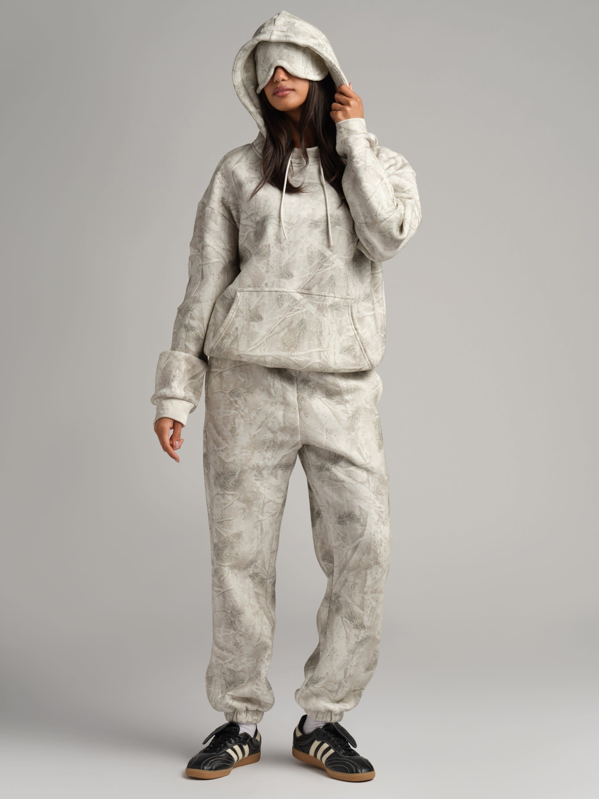 - Oversized hood with built-in eyemask