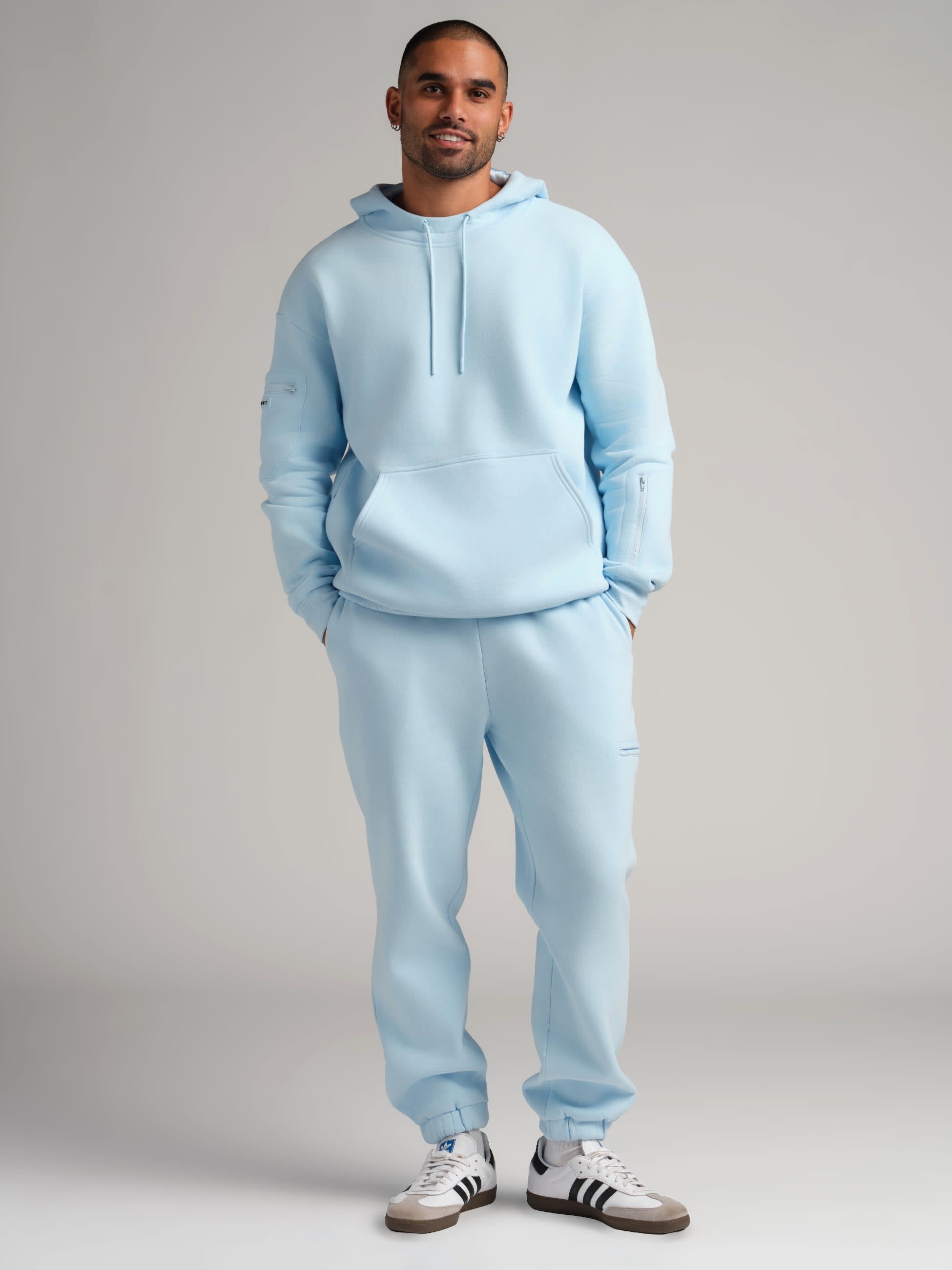 Designed for long flights and even longer naps, with zip sleeve pockets for AirPods and hidden kangaroo pocket compartments for travel essentials—comfort, elevated.