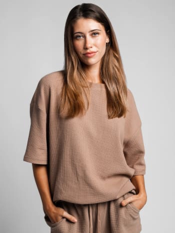 Our Waffle Lounge Shorts combine comfort and style with a curved hem and elastic waistband for the perfect fit. Designed with side pockets, these shorts offer a relaxed, easygoing look that's perfect for lounging or casual wear.