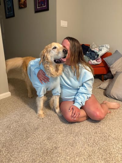 Fowler and GatsbyMy golden retriever and I have seen his friends wearing Comfrt gear on Instagram for months, and when the pastel collection came out, we finally had to join in on the fun! Gatsby loved wearing clothes and he got so excited when I asked him if he wanted to wear his new hoodie. Not only does he look adorable, but he’s terrified of thunder storms and it helped him to feel safer and calmer during a big one! Definitely recommend to dog lovers and their pets 💕